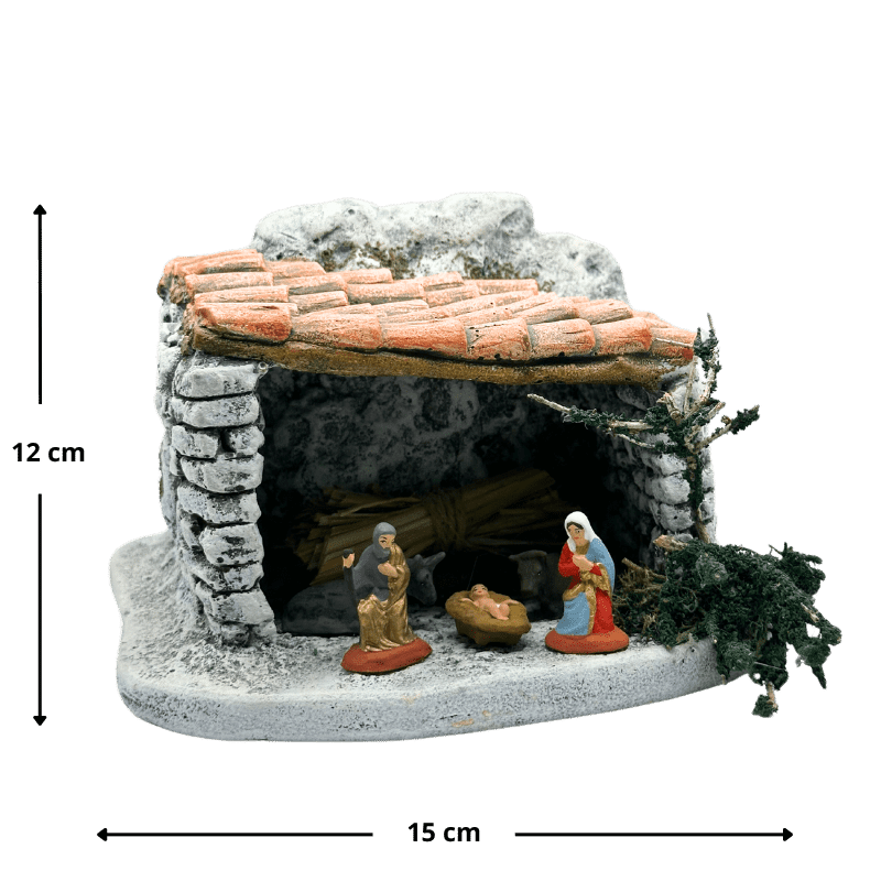 Attention : les santons présents à côté des décors sont vendus séparément et sont là pour que vous puissiez mieux vous rendre compte de la taille du décor.