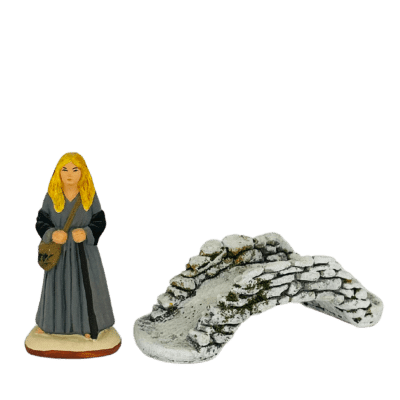 Le mini pont en pierres sèches est reproduit selon un modèle que l’on trouve régulièrement en Provence. On l’empreinte pour traverser la rivière.Les décors de crèche du moulin à huile sont issus d’une fabrication artisanale dans le respect des traditions. La précision des décors et la qualité de fabrication sont le résultat d’un travail de qualité et d’une expérience reconnue. Ils complètent la collection de santons provençaux des différentes tailles.