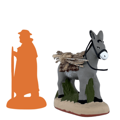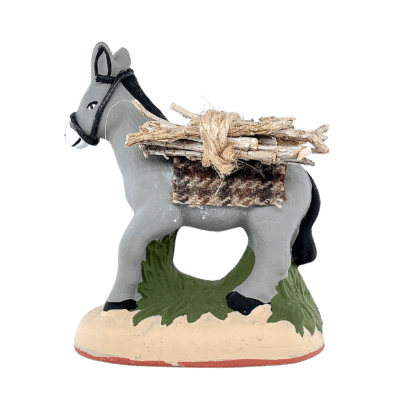 Ce santon traditionnel de Provence représente un âne chargé de fagots, fidèle compagnon des villages d’antan. Symbole de l’effort et de la simplicité, il apporte une touche de réalisme rustique et chaleureuse à votre crèche.