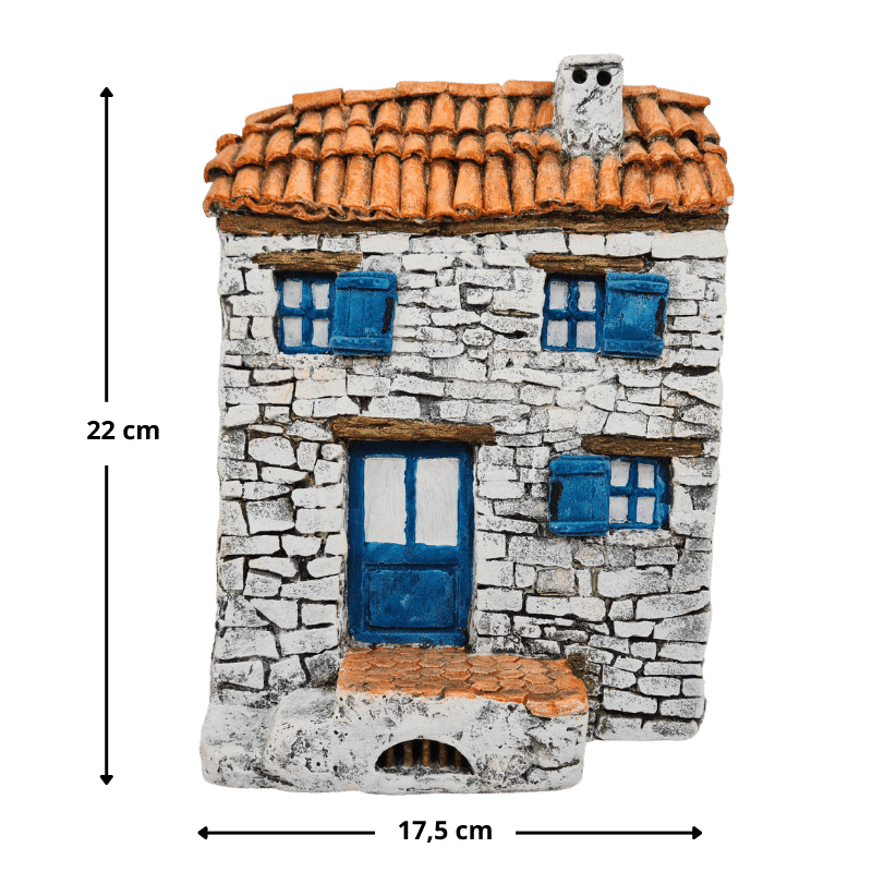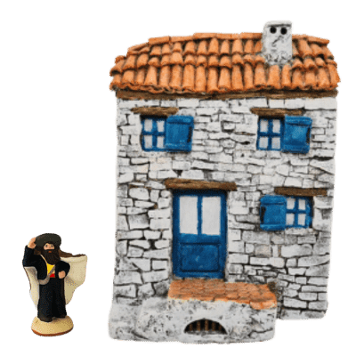 Au cœur du village, cette belle façade provençale attire tous les regards. La blancheur de ses pierres est joliment scandée par les volets bleus qui s’ouvrent sur les rues de votre crèche traditionnelle. Un petit parvis carrelé qui permet d’accéder à la porte d’entrée vitrée laisse la place pour disposer un santon, heureux propriétaire de cette maison.