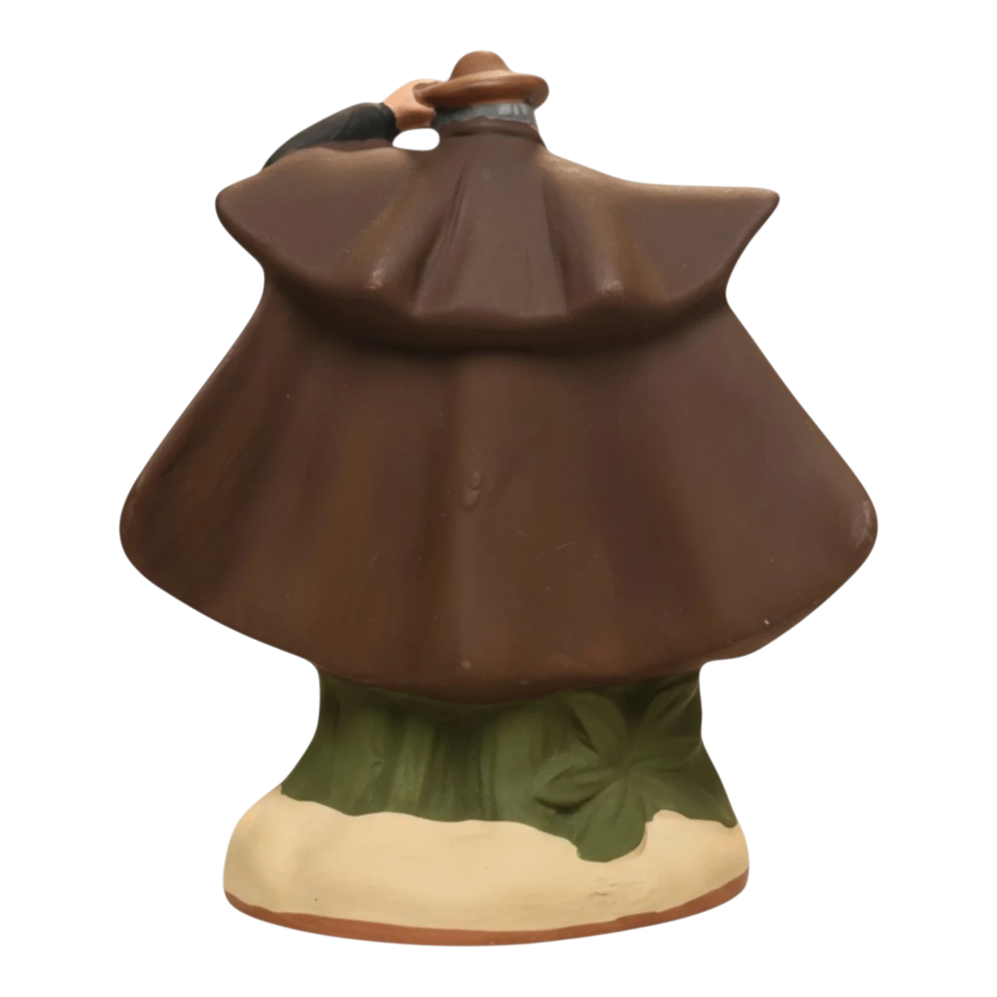 Ce santon ne se contente pas de figurer dans le décor, il raconte une histoire de marche et de détermination. Saisi en plein mouvement, ce berger brave le mistral, sa grande cape brune se soulevant derrière lui comme pour protéger le petit agneau blanc qui se presse contre ses jambes. D’une main, il ajuste son chapeau face au vent, de l’autre, il s’appuie sur son bâton, le regard tourné vers l’horizon. C’est la pièce idéale pour donner du relief et du mouvement à votre mise en scène.