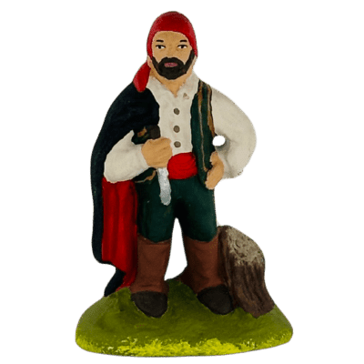 Le brigand, toujours présent, avec son bandana, sa cape et son couteau, sur les routes et dans les marchés pour dépouiller les braves gens.Les santons de Provence (taille 5,5 cm) en argile sont réalisés et peints à la main avec une peinture gouache dans le respect des traditions. La précision des décors et la finesse de l’argile sont le résultat d’un travail de qualité et d’une expérience reconnue. Tous nos santons sont disponibles dans une version à peindre.