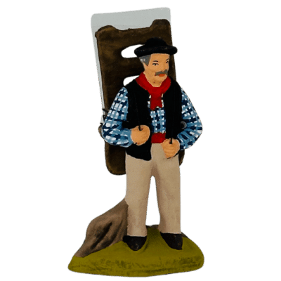Le vitrier était un artisan ambulant qui réparait les vitres. Il fait parti des métiers qui étaient exercés à l’époque. Il portait sur son dos le matériel pour effectuer les réparations et les vitres à changer suivant la taille.Les santons de Provence version luxe (taille 5,5cm) sont peints à la main avec une peinture gouache dans le respect des traditions. La précision des décors et la finesse de l’argile sur une pièce de cette taille nécessite un savoir-faire maitrisé par le Moulin à Huile.
