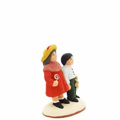 Les enfants se promenant main dans la main !Les santons de Provence (taille 7cm) en argile sont réalisés et peints à la main avec une peinture acrylique dans le respect des traditions. La précision des décors et la finesse de l’argile sont le résultat d’un travail de qualité et d’une expérience reconnue. Tous nos santons sont disponible dans une version à peindre.