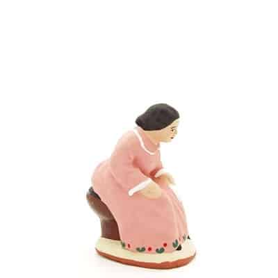 La femme cagadou.Les santons de Provence (taille 7cm) en argile sont réalisés et peints à la main avec une peinture acrylique dans le respect des traditions. La précision des décors et la finesse de l’argile sont le résultat d’un travail de qualité et d’une expérience reconnue. Tous nos santons sont disponible dans une version à peindre.