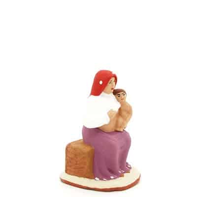 Le santon vierge à l’enfant Marie, assise pour nourrir son enfant, Jésus, qui vient de naître.Les santons de Provence (taille 7cm) en argile sont réalisés et peints à la main avec une peinture acrylique dans le respect des traditions. La précision des décors et la finesse de l’argile sont le résultat d’un travail de qualité et d’une expérience reconnue. Tous nos santons sont disponible dans une version à peindre.