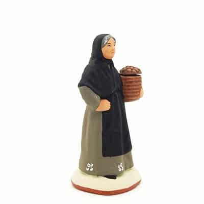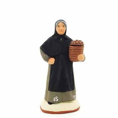 Dans le maquis, la mamie corse ramasse les châtaignes pour ensuite les faire rôtir… un délice !Les santons de Provence (taille 7cm) en argile sont réalisés et peints à la main avec une peinture acrylique dans le respect des traditions. La précision des décors et la finesse de l’argile sont le résultat d’un travail de qualité et d’une expérience reconnue. Tous nos santons sont disponible dans une version à peindre.
