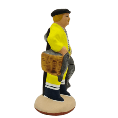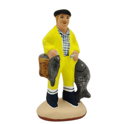 Dans notre collection bretonne, on ne trouve pas plus représentatif du pays celtique que notre marin pêcheur, tout de ciré jaune vêtu ! Fabriqué dans la tradition des santons de Provence, il est d’abord moulé en argile puis peint à la main. Seul ou accompagné de son ami le pêcheur Mod Gwechall , il fréquente assidument les ports de votre crèche traditionnelle et y apport avec lui un souffle de côte atlantique bien rafraichissant sur les bords de la Méditerranée.