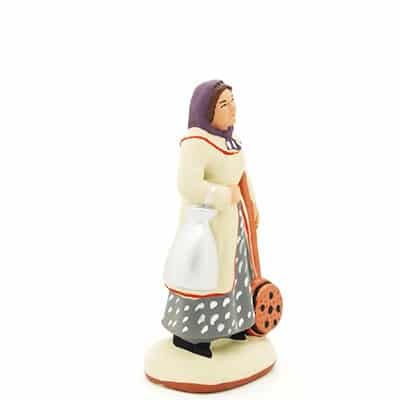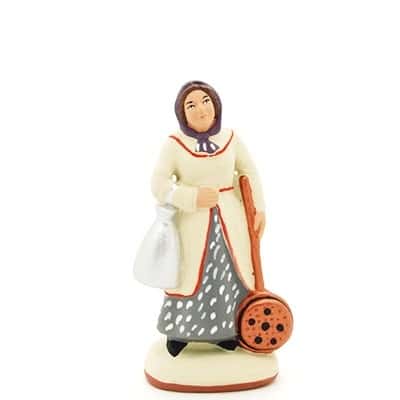 La femme à la bassinoire est une dame âgée qui a souvent froid. La bassinoire était une sorte de bouillotte qui permettait de réchauffer le lit avant de se coucher. Le récipient, percé sur le dessus, contient les braises chaudes de la cheminée. On le glissait alors dans le lit en le tenant par le manche en bois afin de réchauffer les draps. Les santons de Provence (taille 7cm) en argile sont peints à la main avec une peinture acrylique dans le respect des traditions. La précision des décors et la finesse de l’argile sont le résultat d’un travail de qualité et d’une expérience reconnue. Tous nos santons sont réalisés dans nos ateliers et sont disponibles dans une version à peindre.