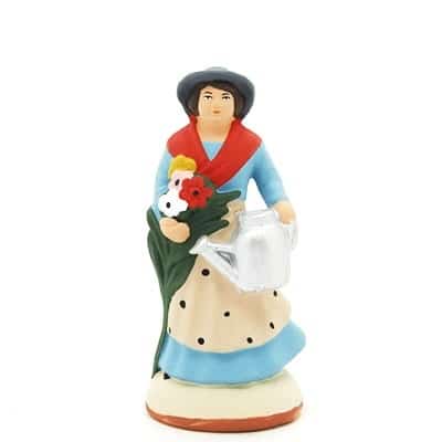 La Jardinière est une paysanne qui entretient et sème des fleurs. Elle porte dans sa main gauche un arrosoir. Dans l’autre main, elle tient un bouquet de fleurs destiné en offrande pour l’enfant Jésus.