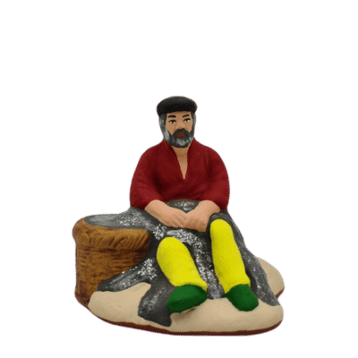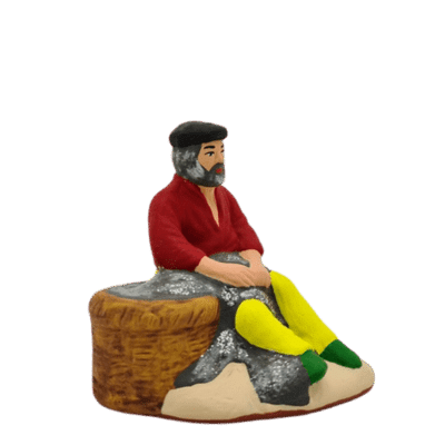 Dans notre collection bretonne, retrouvez ce pêcheur aux filets criant de détails. Moulé en argile et peint à la main, ce santon trouvera sa place sur les bords de votre crèche traditionnelle provençale, assis devant l’imaginaire immensité d’un océan rêvé. Son pantalon est d’un jaune qui rappelle ceux des cirés portés par les marins bretons. Justement, dans la même collection, n’hésitez pas à jeter un œil à son compère le marin pêcheur breton .